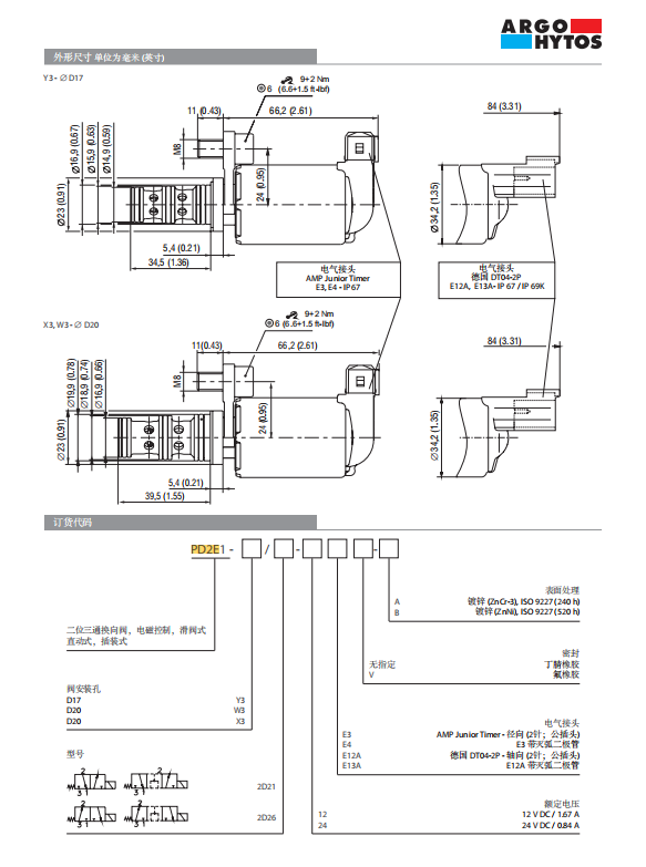 ARGO-HYTOS雅歌辉托斯 PD2E1-X3/2D21-12E3-A PD2E1-X3/2D21-24E12A