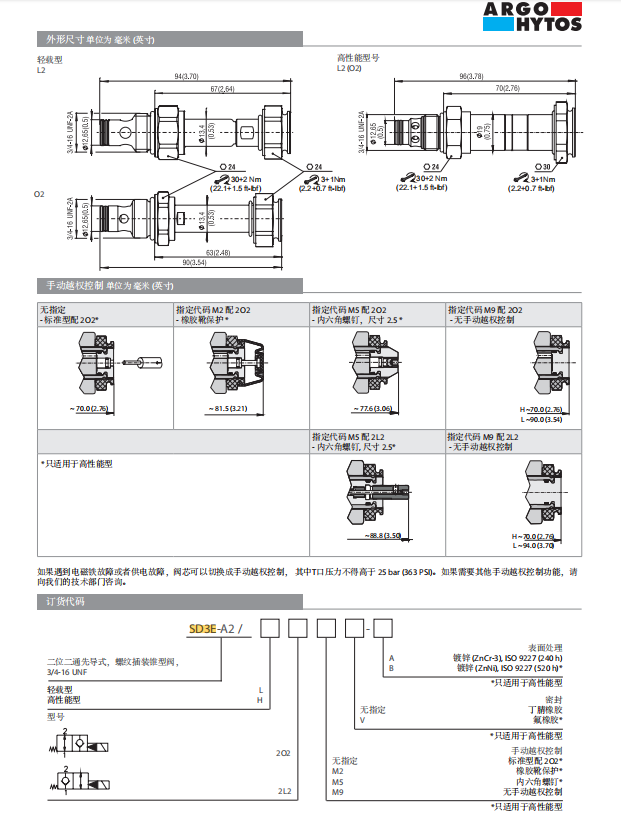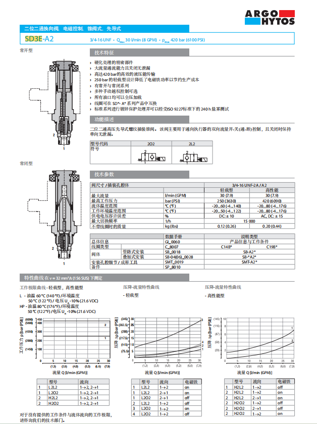 ARGO-HYTOS雅歌辉托斯 SD3E-A2/H2O2-A SD3E-A2/H2L2M5-A SD3E-B2/H2O2-A SD3E-B2/H2L2M5-A